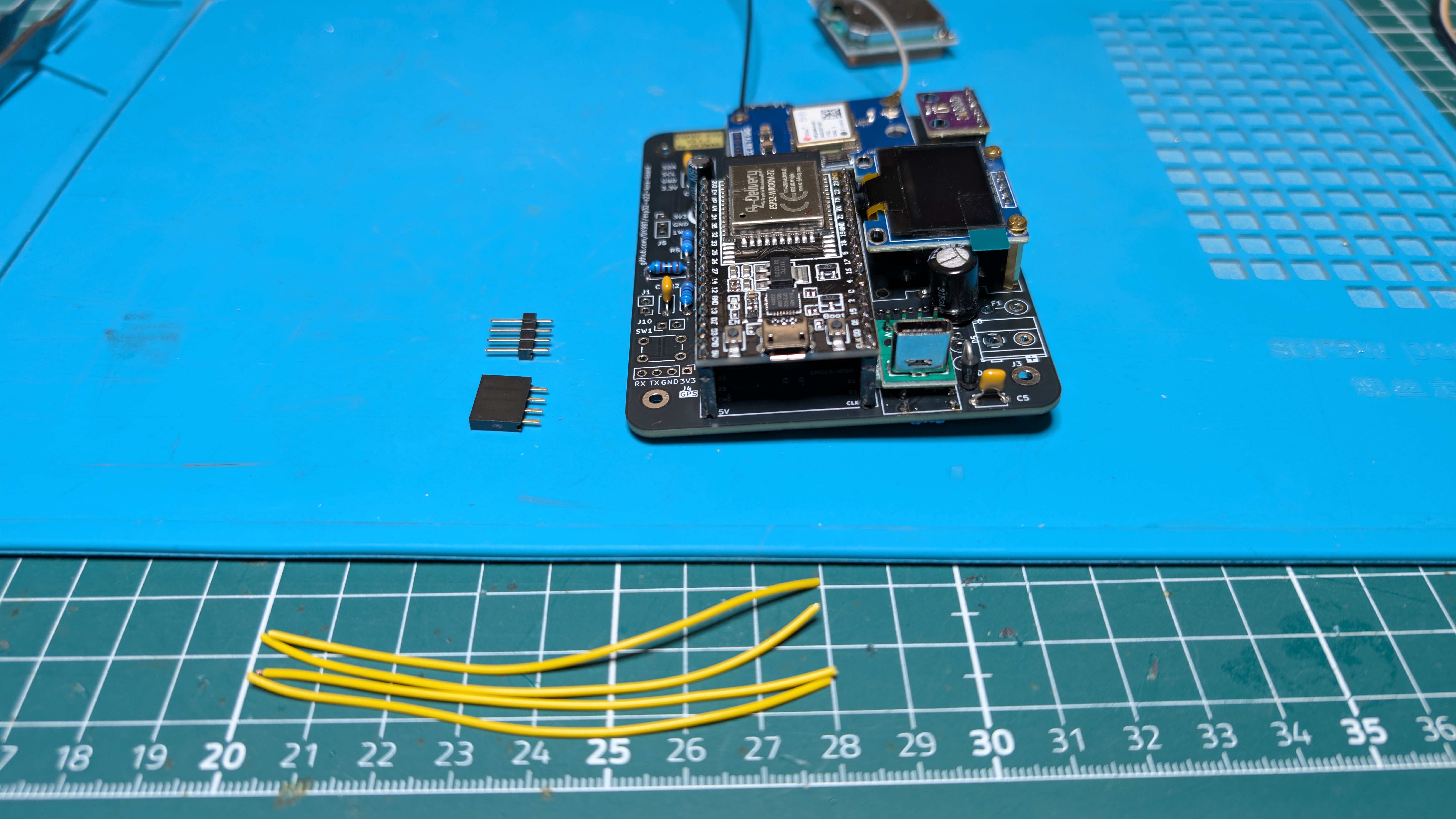 Damit das GPS-Modul steckbar ist auf der Platine, benutzen wir eine 4-er Buchse und Stiftleiste. Auf der GPS-Platine habe ich die Kabel direkt angelötet.
