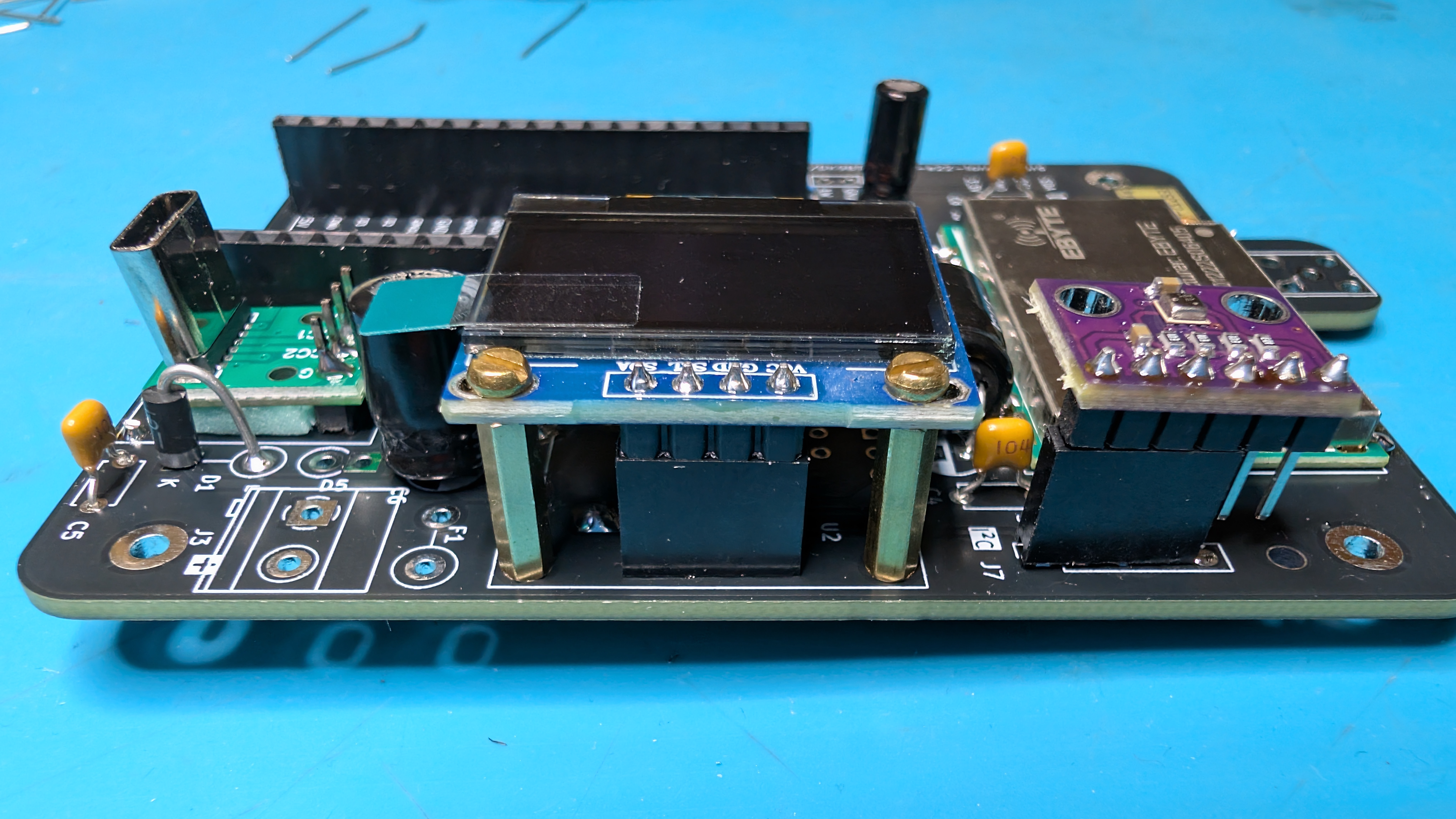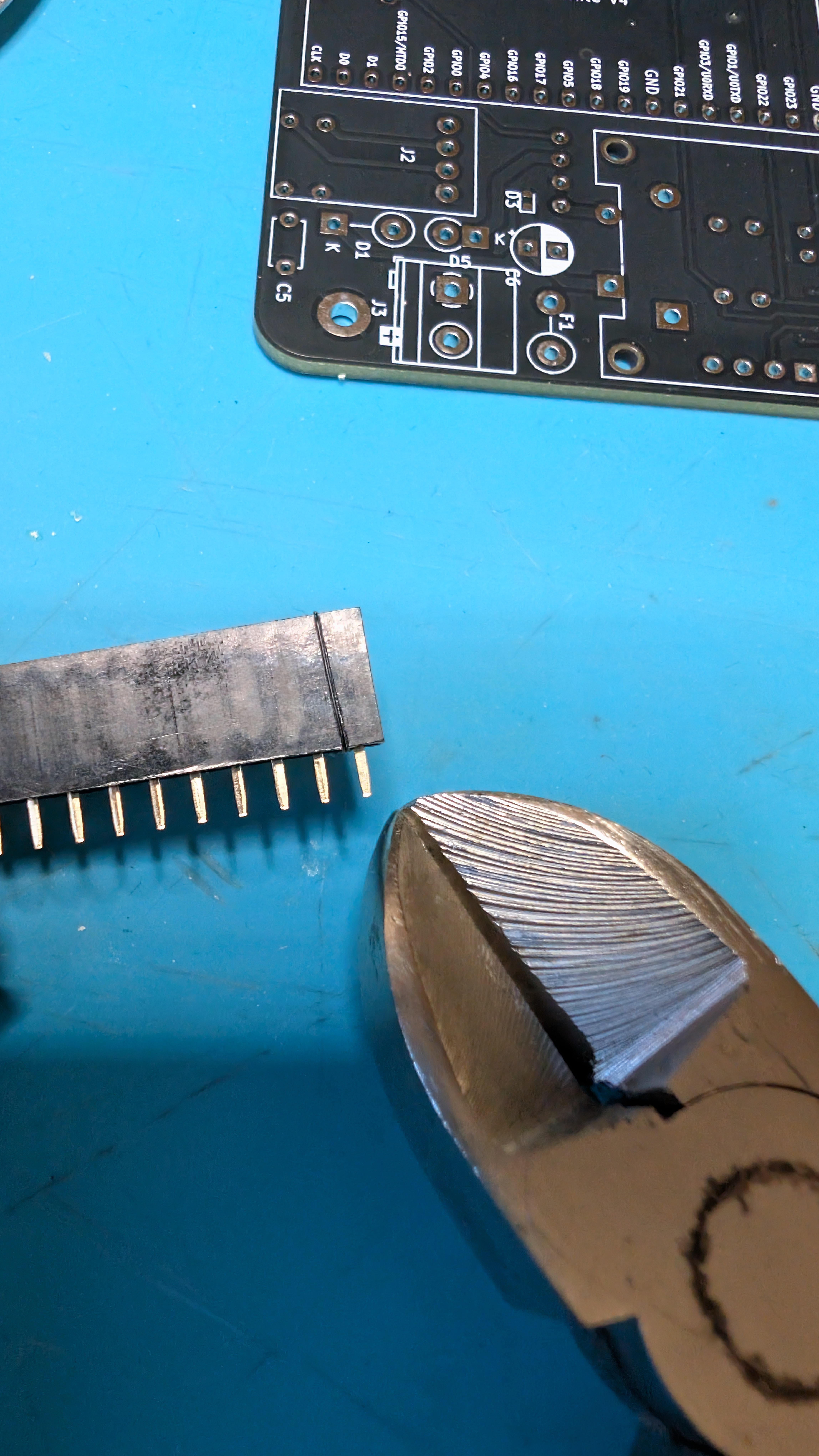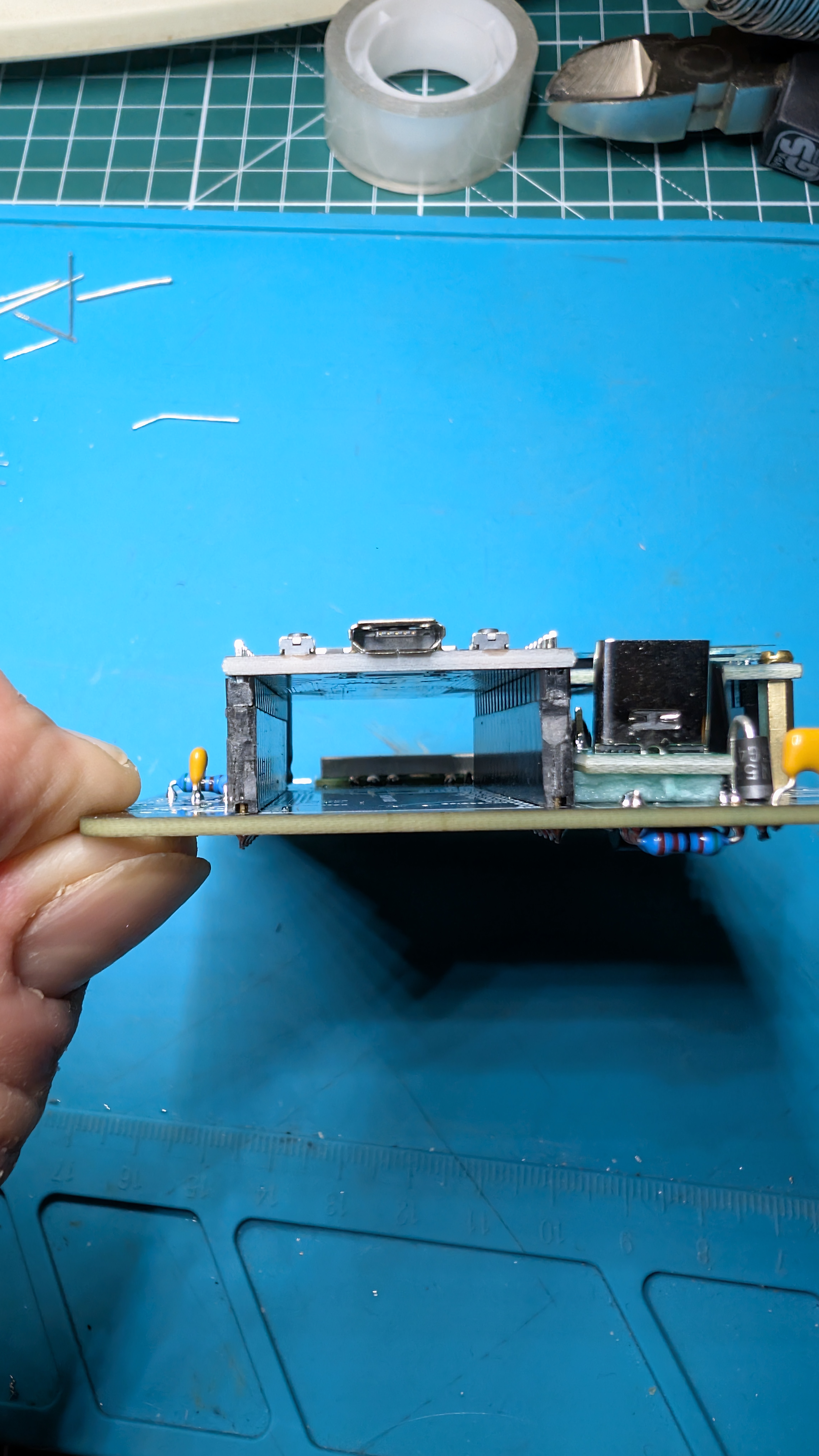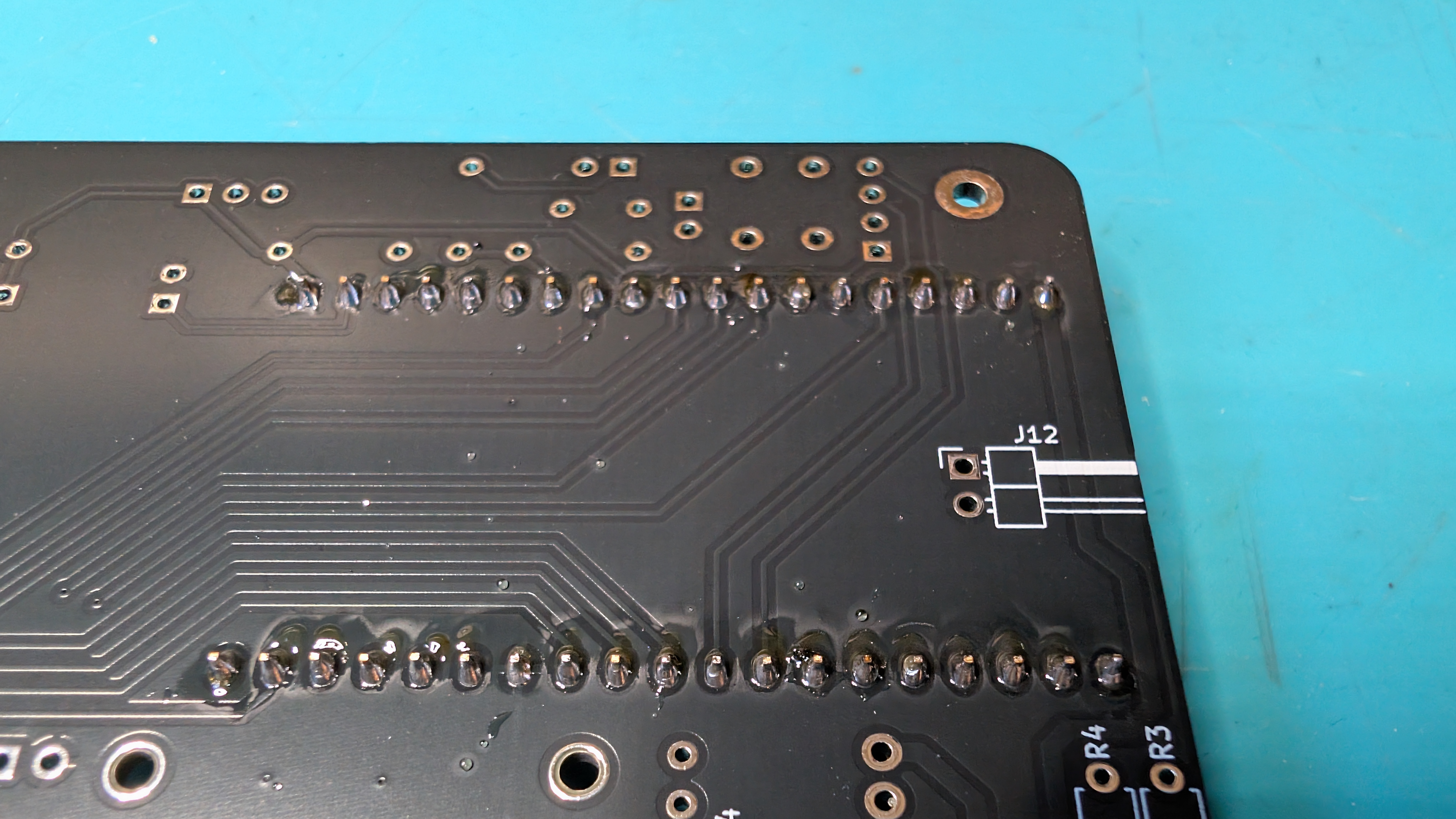 Von unten eingelötete Bauteile sollten oben möglichst kurze Lötpins produzieren. Da kommt später der Bildschirm drüber.
