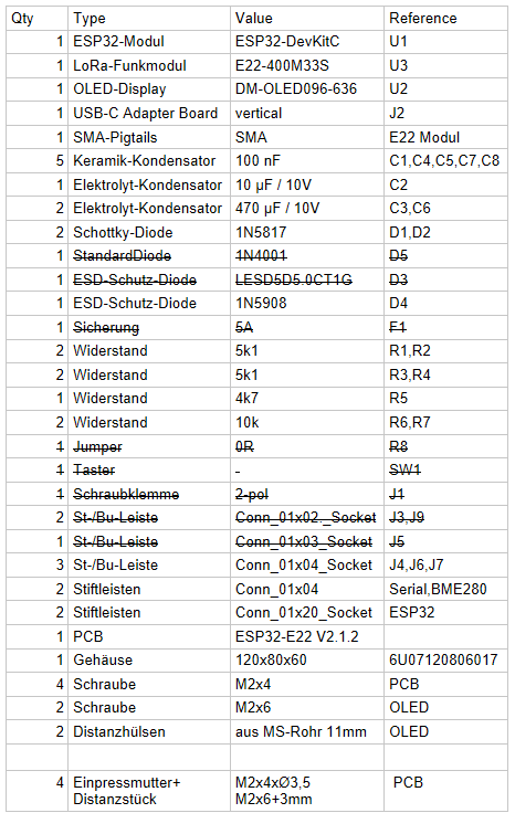 | 1 | LoRa-Funkmodul | E22-400M33S | U3 |