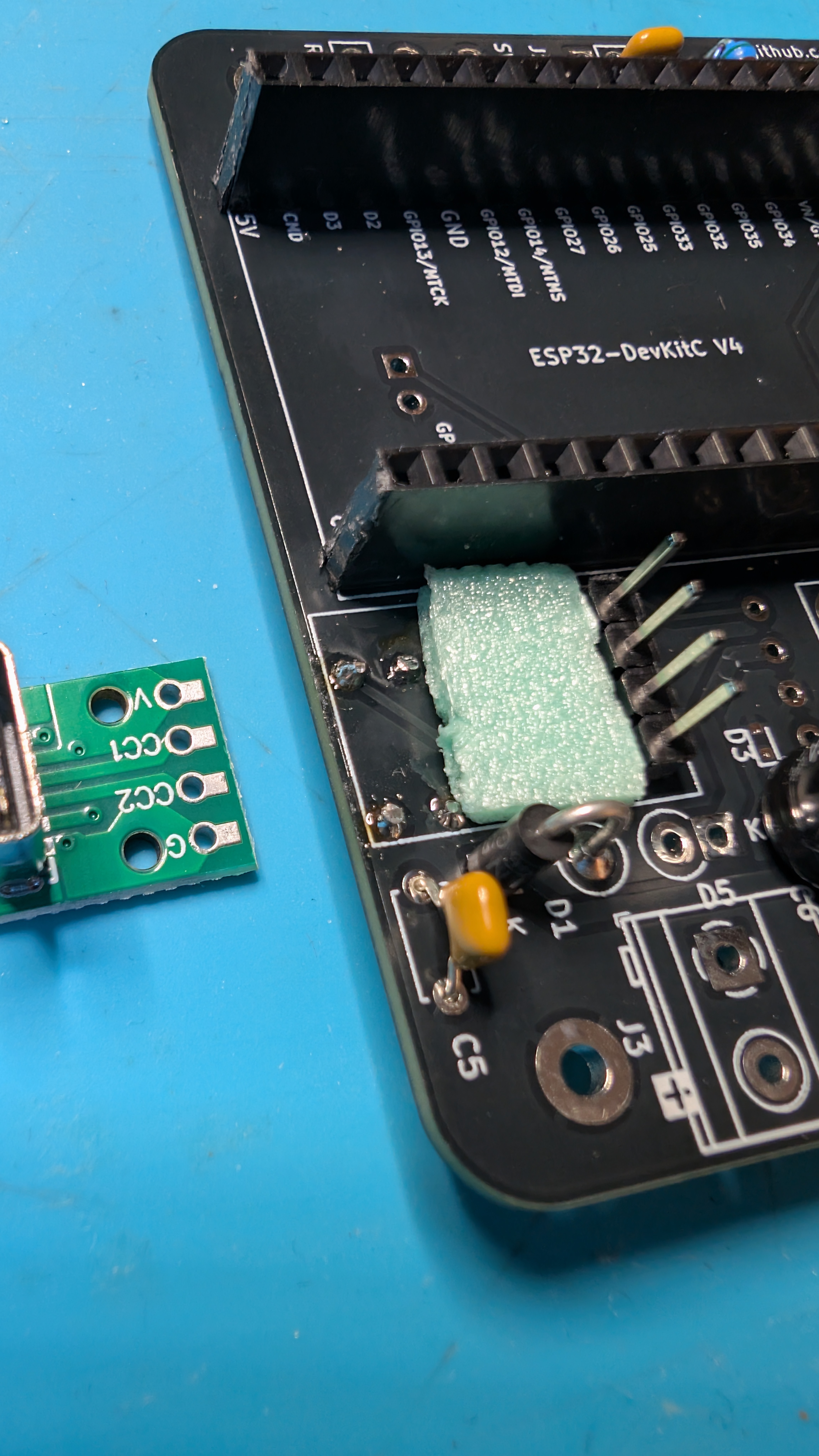 - Warum USB-C fragst du dich vielleicht. Das ist einfach. Wenn du auf einem informativ guten Stand bist, hast du sicher schon mitbekommen, dass es Netzteile mit unterschiedlichen Leistungseigenschaften gibt. Moderne USB-C Netzteile können heute immer öfters auch PD = Power Delivery. d.h. Sie liefern standardmäßig 5 Volt aber nur ca. 0,5 Ampere. Erst wenn über zwei Widerstände (Spannungsteiler) signalisiert wird, dass sie mehr Leistung abgeben dürfen, machen sie es auch und geben maximal 3 Amp. Die Signalisierung erfolgt über die Kabel/Lötpins CC1+CC2.